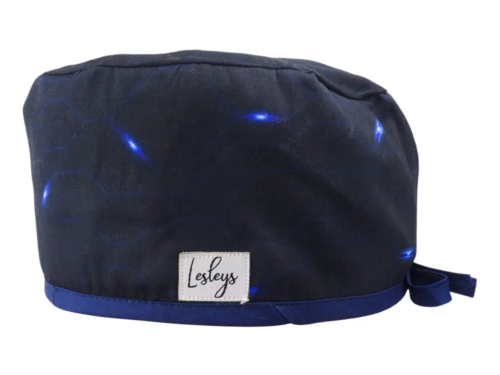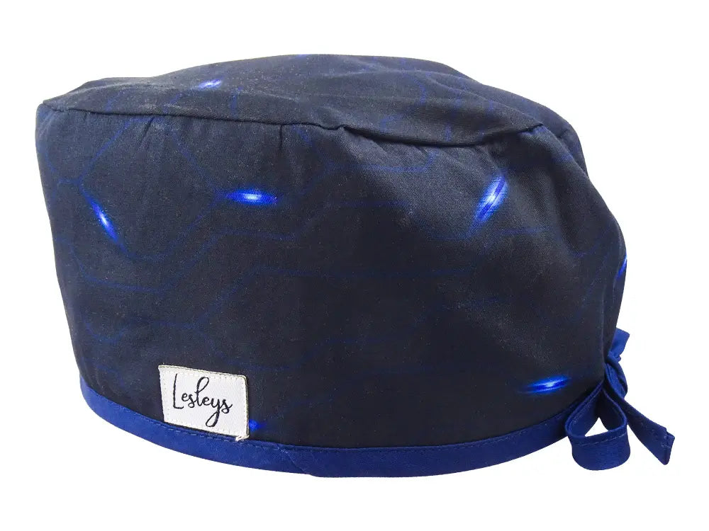 High-Tech Inspiration – The Slim Surgical Cap Circuit Board is designed for innovators at heart, featuring glowing data-like lines that resemble a futuristic circuit board on a sleek black background. This unique scrub cap adds a modern, tech-inspired edge to your professional wardrobe while maintaining full practicality.